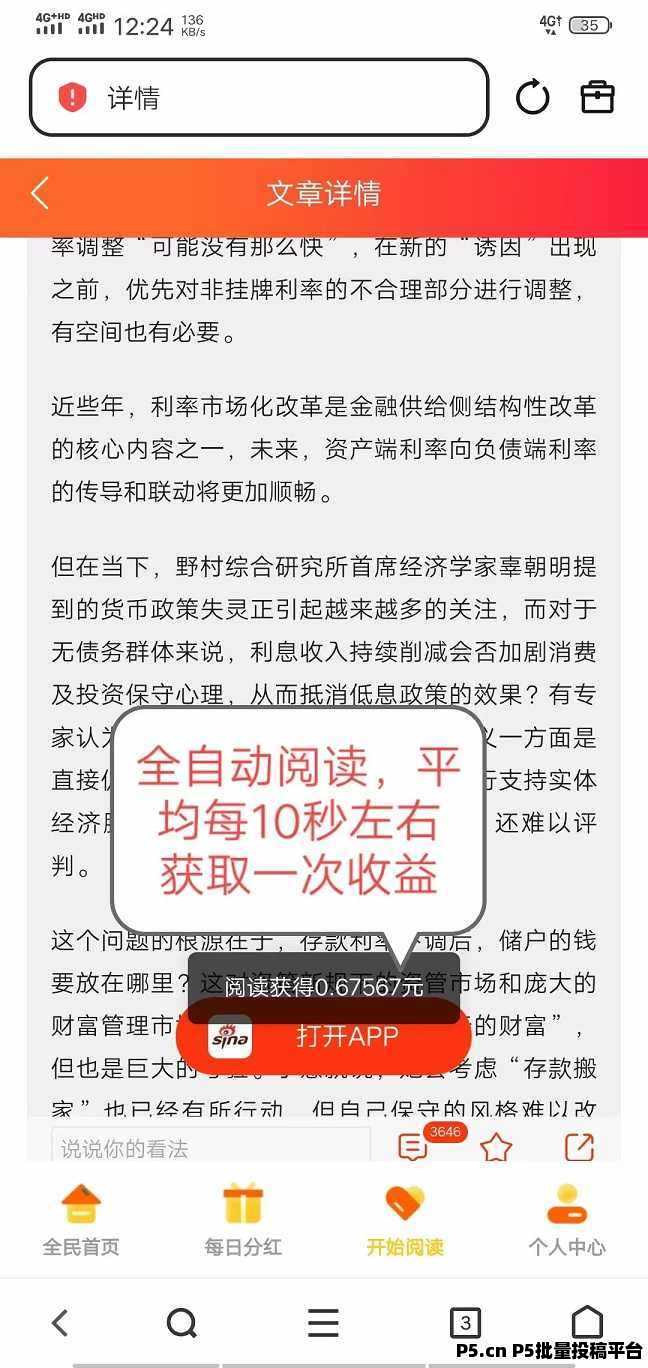 全自动挂机赚米,天天阅读,每天高收益